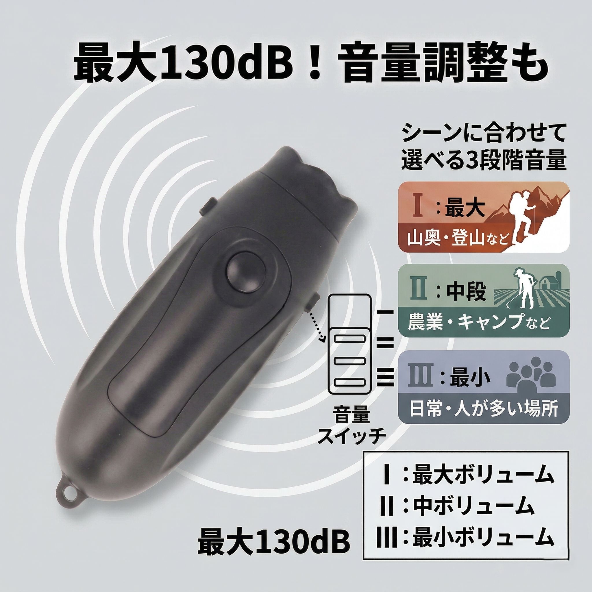 【120dB】熊よけホイッスル ステンレス 大音量 二重管構造