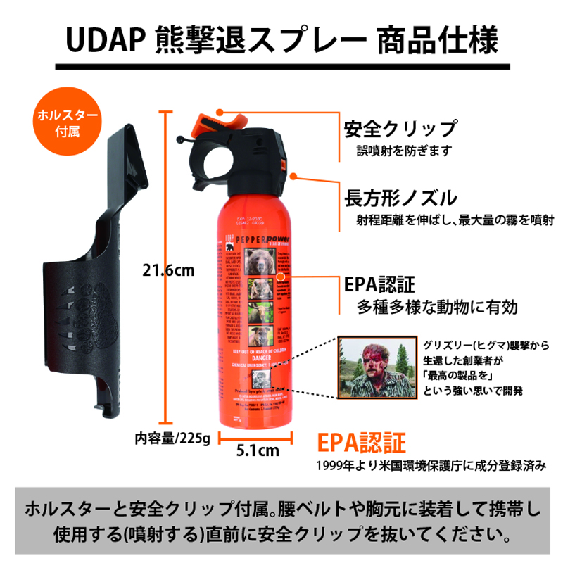 【EPA認証】UDAP 熊撃退スプレー PEPPER POWER(ペッパーパワー)【正規輸入品】4月末入荷次第順次発送